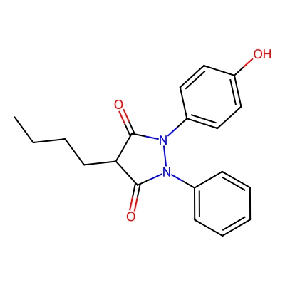 | CCSBASE_70F252BBAB | OXYPHENBUTAZONE | [M+H]+ | 325.1547 | 177.2 | CCCCC1C(=O)N(N(C1=O)C2=CC=C(C=C2)O)C3=CC=CC=C3 | Benzenoids | 1 | 7 | TW | calibrated with polyalanine and drug standards | |