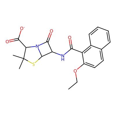 | CCSBASE_1F406F8889 | NAFCILLIN SODIUM | [M+H]+ | 415.1322 | 191.5 | CCOc1ccc2ccccc2c1C(=O)NC1C(=O)N2C1SC(C)(C)C2C(=O)[O-] | None | 1 | 7 | TW | calibrated with polyalanine and drug standards | |