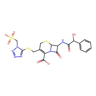 | CCSBASE_BE5E39C5FF | CEFONICID SODIUM | [M+Na]+ | 565.024 | 205.7 | O=C([O-])C1=C(CSc2nnnn2CS(=O)(=O)[O-])CSC2C(NC(=O)C(O)c3ccccc3)C(=O)N12 | None | 1 | 7 | TW | calibrated with polyalanine and drug standards | |