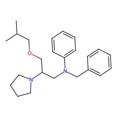 | CCSBASE_06E9F43234 | BEPRIDIL HYDROCHLORIDE | [M+H]+ | 367.2744 | 191.4 | CC(C)COCC(CN(Cc1ccccc1)c1ccccc1)N1CCCC1 | None | 1 | 7 | TW | calibrated with polyalanine and drug standards | |
