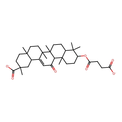 | CCSBASE_446E159312 | CARBENOXOLONE SODIUM | [M+H]+ | 571.363 | 241.0 | CC1(C(=O)[O-])CCC2(C)CCC3(C)C(=CC(=O)C4C5(C)CCC(OC(=O)CCC(=O)[O-])C(C)(C)C5CCC43C)C2C1 | None | 1 | 7 | TW | calibrated with polyalanine and drug standards | |