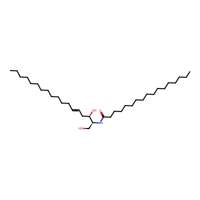 | CCSBASE_37103014D5 | Cer(36:0) | [M+H]+ | 568.5668 | 262.0 | CCCCCCCCCCCCCCCCCC(=O)N[C@@H](CO)[C@@H](CCCCCCCCCCCCCCC)O | Lipids and lipid-like molecules | 1 | 9 | DT | single field, calibrated with Agilent tune mix (Agilent) |
