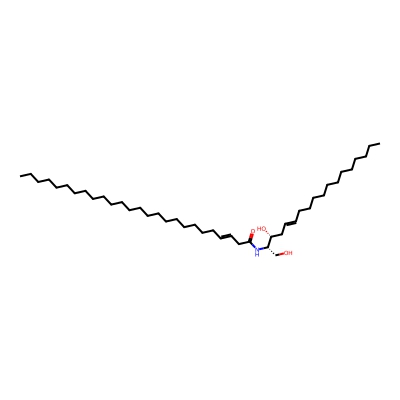 | CCSBASE_4B91A4D4B8 | Cer(44:1) | [M+Na]+ | 700.6584 | 285.0 | CCCCCCCCCCCCCCCCCCCCCCCCCC(=O)N[C@@H](CO)[C@@H](CC=CCCCCCCCCCCCC)O | Lipids and lipid-like molecules | 1 | 9 | DT | single field, calibrated with Agilent tune mix (Agilent) | |