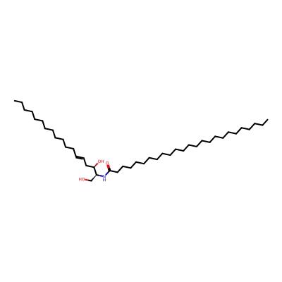 | CCSBASE_375542319E | Cer(44:2) | [M+H]+ | 676.6607 | 283.5 | CCCCCCCCCCCCCCCCCCCCCCC=CCC(=O)N[C@@H](CO)[C@@H](CC=CCCCCCCCCCCCC)O | Lipids and lipid-like molecules | 1 | 9 | DT | single field, calibrated with Agilent tune mix (Agilent) | |
