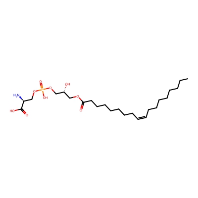 | CCSBASE_679561F89B | LPS(18:1) | [M+H]+ | 524.2988 | 224.2 | CCCCCCCC/C=C\CCCCCCCC(=O)OC[C@H](COP(=O)(O)OC[C@@H](C(=O)O)N)O | Lipids and lipid-like molecules | 1 | 9 | DT | single field, calibrated with Agilent tune mix (Agilent) | |