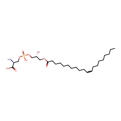 | CCSBASE_26A985D3E1 | LPS(20:1) | [M+H]+ | 552.3301 | 231.8 | CCCCCCCC/C=C\CCCCCCCCCC(=O)OC[C@H](COP(=O)(O)OC[C@@H](C(=O)O)N)O | Lipids and lipid-like molecules | 1 | 9 | DT | single field, calibrated with Agilent tune mix (Agilent) |