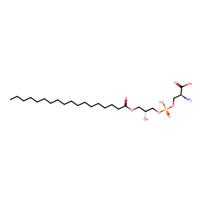| CCSBASE_2B3FC158FA | LPS(18:0) | [M+H]+ | 526.3145 | 228.3 | CCCCCCCCCCCCCCCCCC(=O)OC[C@H](COP(=O)(O)OC[C@@H](C(=O)O)N)O | Lipids and lipid-like molecules | 1 | 9 | DT | single field, calibrated with Agilent tune mix (Agilent) | |