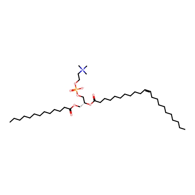 | CCSBASE_B8A8DB5007 | PC(35:1) | [M+H]+ | 774.6013 | 289.2 | CCCCCCCCCCCCC(=O)OC[C@H](COP(=O)([O-])OCC[N+](C)(C)C)OC(=O)CCCCCCCCC/C=C\CCCCCCCCCC | Lipids and lipid-like molecules | 1 | 9 | DT | single field, calibrated with Agilent tune mix (Agilent) | |