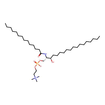 | CCSBASE_1A646FA7F2 | SM(34:0) | [M+H]+ | 705.591 | 285.0 | CCCCCCCCCCCCCCC[C@H]([C@H](COP(=O)([O-])OCC[N+](C)(C)C)NC(=O)CCCCCCCCCCCCCCC)O | Lipids and lipid-like molecules | 1 | 9 | DT | single field, calibrated with Agilent tune mix (Agilent) |