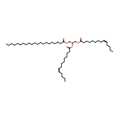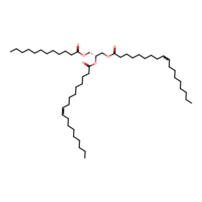 | CCSBASE_5C36B78861 | TG(49:2) | [M+NH4]+ | 834.7551 | 310.5 | CCCCCCCCCCCCCCCCCCCCC(=O)OC[C@@H](COC(=O)CCCCCCC/C=C\CCCC)OC(=O)CCCCCCC/C=C\CCCC | Lipids and lipid-like molecules | 1 | 9 | DT | single field, calibrated with Agilent tune mix (Agilent) | |
