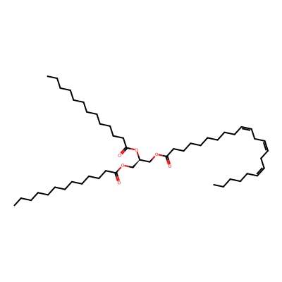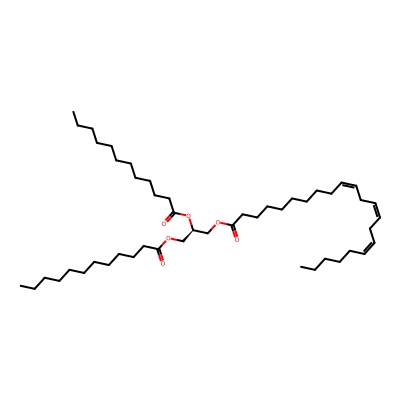 | CCSBASE_AC226ADF97 | TG(48:3) | [M+NH4]+ | 818.7238 | 304.8 | CCCCCCCCCCCCC(=O)OC[C@H](COC(=O)CCCCCCCC/C=C\C/C=C\C/C=C\CCCCC)OC(=O)CCCCCCCCCCCC | Lipids and lipid-like molecules | 1 | 9 | DT | single field, calibrated with Agilent tune mix (Agilent) | |