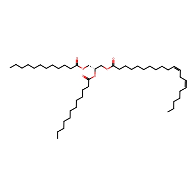 | CCSBASE_4B9C73D99C | TG(46:2) | [M+NH4]+ | 792.7081 | 300.4 | CCCCCCCCCCCC(=O)OC[C@H](COC(=O)CCCCCCC/C=C\CCCCCCC)OC(=O)CCCCCCC/C=C\CCCCCCC | Lipids and lipid-like molecules | 1 | 9 | DT | single field, calibrated with Agilent tune mix (Agilent) | |
