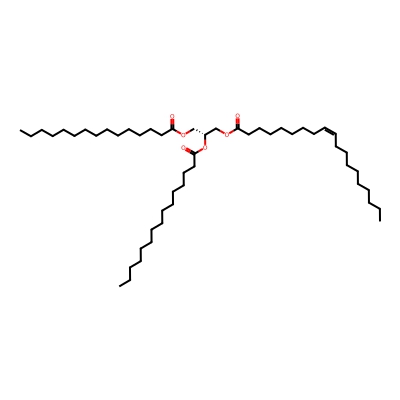 | CCSBASE_AE8E458DB4 | TG(49:1) | [M+NH4]+ | 836.7707 | 313.0 | CCCCCCCCCCCCCCC(=O)OC[C@H](COC(=O)CCCCCCC/C=C\CCCCCCCCC)OC(=O)CCCCCCCCCCCCCC | Lipids and lipid-like molecules | 1 | 9 | DT | single field, calibrated with Agilent tune mix (Agilent) | |