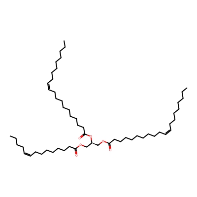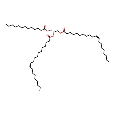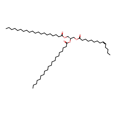 | CCSBASE_BFC08CAF57 | TG(53:1) | [M+NH4]+ | 892.8333 | 325.0 | CCCCCCCCCCCCCCCCCCC(=O)OC[C@@H](COC(=O)CCCCCCC/C=C\CCCCC)OC(=O)CCCCCCCCCCCCCCCCCC | Lipids and lipid-like molecules | 1 | 9 | DT | single field, calibrated with Agilent tune mix (Agilent) | |