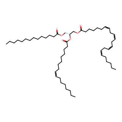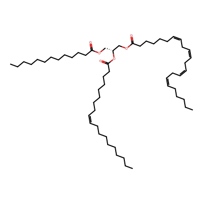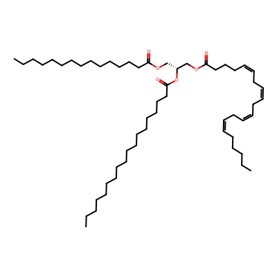 | CCSBASE_AC3A463B17 | TG(53:4) | [M+NH4]+ | 886.7864 | 319.5 | CCCCCCCCCCCCCCCCCC(=O)O[C@H](COC(=O)CCCCCCCCCCCCCC)COC(=O)CCC/C=C\C/C=C\C/C=C\C/C=C\CCCCC | Lipids and lipid-like molecules | 1 | 9 | DT | single field, calibrated with Agilent tune mix (Agilent) | |