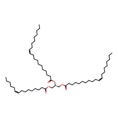 | CCSBASE_65C0FABE87 | TG(56:2) | [M+NH4]+ | 932.8646 | 332.8 | CCCCCCCCCCCC(=O)OC[C@H](COC(=O)CCCCCCCCC/C=C\CCCCCCCCCC)OC(=O)CCCCCCCCC/C=C\CCCCCCCCCC | Lipids and lipid-like molecules | 1 | 9 | DT | single field, calibrated with Agilent tune mix (Agilent) | |