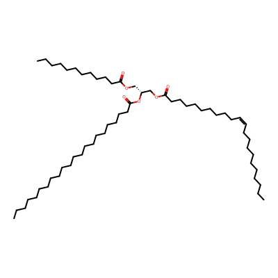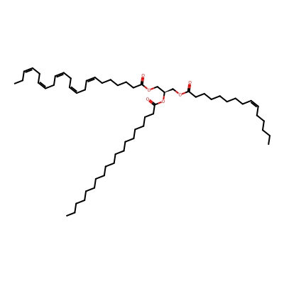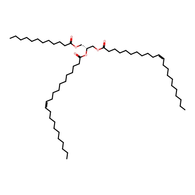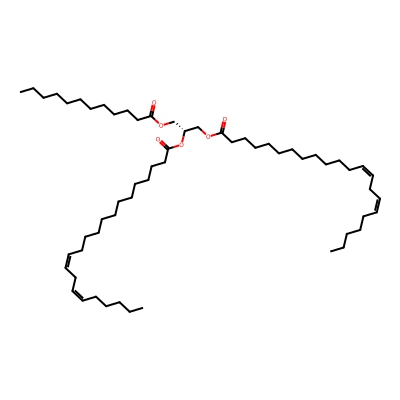 | CCSBASE_6EA95EC2DC | TG(55:2) | [M+NH4]+ | 918.849 | 329.2 | CCCCCCCCCCCCCCCCCCCCCC(=O)OC[C@@H](COC(=O)CCCCCCCCCCCC)OC(=O)CCCCCCCCC/C=C\C/C=C\CCCCC | Lipids and lipid-like molecules | 1 | 9 | DT | single field, calibrated with Agilent tune mix (Agilent) | |