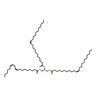 | CCSBASE_CAB9015201 | TG(62:4) | [M+NH4]+ | 1012.9272 | 345.8 | CCCCCCCCCC/C=C\CCCCCCCCCC(=O)OC[C@@H](COC(=O)CCCCCCC/C=C\C/C=C\CCCCC)OC(=O)CCCCCCCCC/C=C\CCCCCCCCCC | Lipids and lipid-like molecules | 1 | 9 | DT | single field, calibrated with Agilent tune mix (Agilent) | |