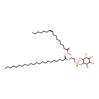 | CCSBASE_3DB047E358 | PI(38:1) | [M-H]- | 891.5963 | 296.1 | CCCCCCCCCCCCCCCCCCCCCC(=O)O[C@H](COC(=O)CCCCCCC/C=C\CCCCCC)COP(=O)(O)OC1C([C@@H](C(C(C1O)O)O)O)O | Lipids and lipid-like molecules | -1 | 9 | DT | single field, calibrated with Agilent tune mix (Agilent) | |