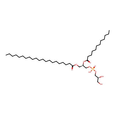 | CCSBASE_394B4860C6 | PG(34:0) | [M-H]- | 749.529 | 270.8 | CCCCCCCCCCCCCCCCCCCC(=O)OC[C@H](COP(=O)(O)OC[C@H](CO)O)OC(=O)CCCCCCCCCCCCC | Lipids and lipid-like molecules | -1 | 11 | TW | calibrated with phosphatidylcholines (ESI+) and phosphatidylethanolamines (ESI-) | |