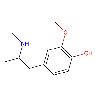 | CCSBASE_81CAD3D684 | HMMA | [M+H]+ | 196.1332 | 147.6 | CC(CC1=CC(=C(C=C1)O)OC)NC | Benzenoids | 1 | 12 | DT | single field, calibrated | |