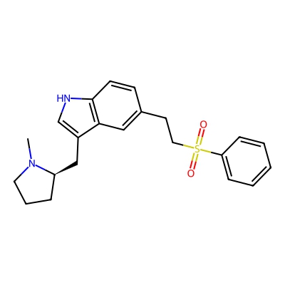 | CCSBASE_F22570F84D | Eletriptan | [M+H]+ | 383.5293 | 186.1 | CN1CCC[C@@H]1CC2=CNC3=C2C=C(C=C3)CCS(=O)(=O)C4=CC=CC=C4 | Organoheterocyclic compounds | 1 | 13 | TW | Major Mix IMS/Tof Calibration Kit (Waters) | |