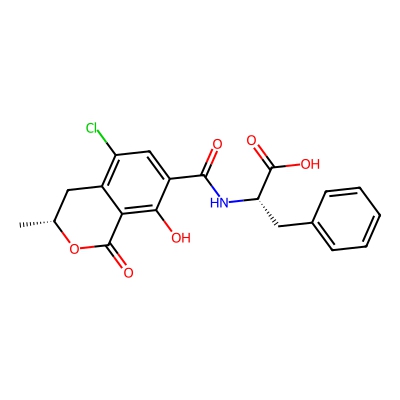 | CCSBASE_462CDD7C10 | Ochratoxin A | [M-H]- | 404.0895 | 194.0 | C[C@@H]1CC2=C(C=C(C(=C2C(=O)O1)O)C(=O)N[C@@H](CC3=CC=CC=C3)C(=O)O)Cl | Phenylpropanoids and polyketides | -1 | 14 | TW | calibrated with polyalanine | |