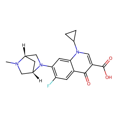| CCSBASE_34C7FDC552 | DANOFLOXACIN | [M+H]+ | 358.1561 | 193.3 | CN1C[C@@H]2C[C@H]1CN2C3=C(C=C4C(=C3)N(C=C(C4=O)C(=O)O)C5CC5)F | Organoheterocyclic compounds | 1 | 15 | TW | calibrated with Waters Major Mix | |