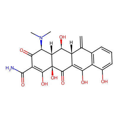 | CCSBASE_6FAD7031A1 | METHACYCLINE | [M+H]+ | 443.1449 | 197.8 | CN(C)[C@H]1[C@@H]2[C@H]([C@@H]3C(=C)C4=C(C(=CC=C4)O)C(=C3C(=O)[C@@]2(C(=C(C1=O)C(=O)N)O)O)O)O | Phenylpropanoids and polyketides | 1 | 15 | TW | calibrated with Waters Major Mix |