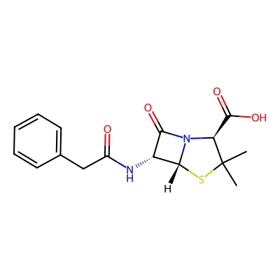 | CCSBASE_8A0D2F3AB4 | PENICILLIN G | [M+H]+ | 335.106 | 176.6 | CC1([C@@H](N2[C@H](S1)[C@@H](C2=O)NC(=O)CC3=CC=CC=C3)C(=O)O)C | Organic acids and derivatives | 1 | 15 | TW | calibrated with Waters Major Mix | |