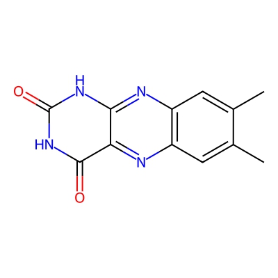 | CCSBASE_56EACA2136 | LUMICHROME | [M+H]+ | 243.0882 | 153.1 | CC1=CC2=C(C=C1C)N=C3C(=N2)C(=O)NC(=O)N3 | Organoheterocyclic compounds | 1 | 16 | DT | single field, calibrated with ESI Low Concentration Tuning Mix (Agilent) | |