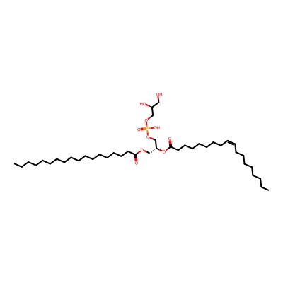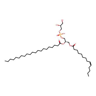 | CCSBASE_6D1BD6154E | PG(36:1) | [M-H]- | 775.54946 | 282.9 | CCCCCCCCCCCCCCCCCC(=O)OC[C@H](COP(=O)(O)OC[C@H](CO)O)OC(=O)CCCCCCC/C=C\CCCCCCCC | Lipids and lipid-like molecules | -1 | 3 | DT | stepped-field | |