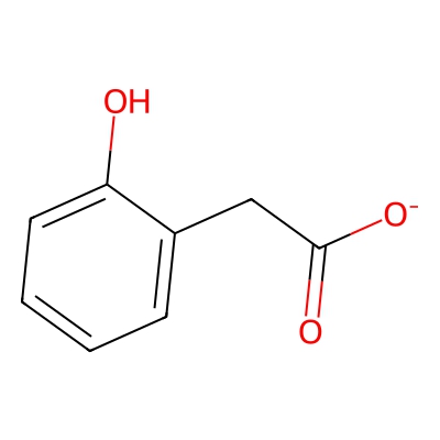 | CCSBASE_D1ED1B004C | 2-HYDROXYPHENYLACETATE | [M-H]- | 151.0395 | 130.1 | C1=CC=C(C(=C1)CC(=O)[O-])O | Benzenoids | -1 | 16 | DT | single field, calibrated with ESI Low Concentration Tuning Mix (Agilent) | |