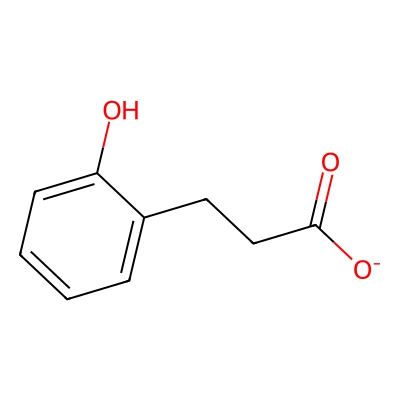 | CCSBASE_39307E8712 | 3-(2-HYDROXYPHENYL)PROPANOATE | [M-H]- | 165.0552 | 133.2 | C1=CC=C(C(=C1)CCC(=O)[O-])O | Phenylpropanoids and polyketides | -1 | 16 | DT | single field, calibrated with ESI Low Concentration Tuning Mix (Agilent) | |