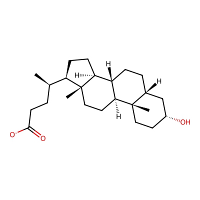 | CCSBASE_612C78A0F8 | LITHOCHOLATE | [M-H]- | 375.2899 | 203.1 | C[C@H](CCC(=O)[O-])[C@H]1CC[C@@H]2[C@@]1(CC[C@H]3[C@H]2CC[C@H]4[C@@]3(CC[C@H](C4)O)C)C | Lipids and lipid-like molecules | -1 | 16 | DT | single field, calibrated with ESI Low Concentration Tuning Mix (Agilent) | |