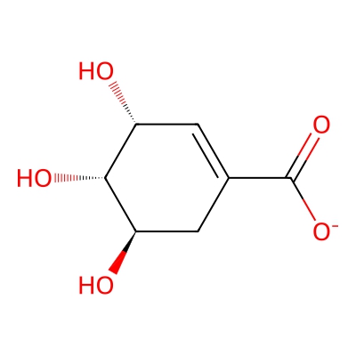 | CCSBASE_BE3FE8F29B | SHIKIMATE | [M-H]- | 173.045 | 136.3 | C1[C@H]([C@@H]([C@@H](C=C1C(=O)[O-])O)O)O | Organic oxygen compounds | -1 | 16 | DT | single field, calibrated with ESI Low Concentration Tuning Mix (Agilent) | |