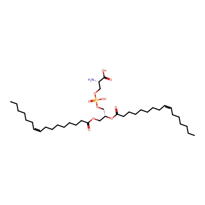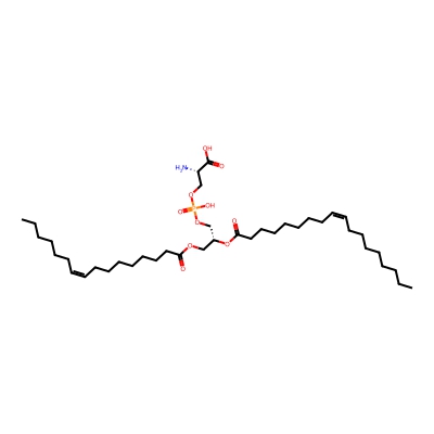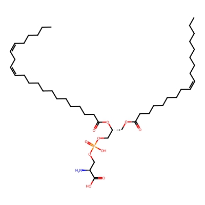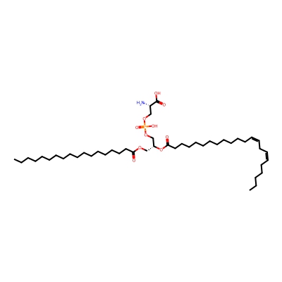 | CCSBASE_2BF22535F7 | PS(40:2) | [M-H]- | 842.59168 | 301.0 | CCCCCCCCCCCCCCCCCC(=O)OC[C@H](COP(=O)(O)OC[C@@H](C(=O)O)N)OC(=O)CCCCCCCCCCC/C=C\C/C=C\CCCCC | None | -1 | 3 | DT | stepped-field | |