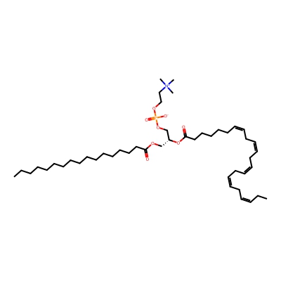 | CCSBASE_B496E2A84E | PC(40:10) | [M+Na]+ | 850.54 | 302.2 | CC/C=C\C/C=C\C/C=C\C/C=C\C/C=C\CCCC(=O)OC[C@H](COP(=O)([O-])OCC[N+](C)(C)C)OC(=O)CCC/C=C\C/C=C\C/C=C\C/C=C\C/C=C\CC | Lipids and lipid-like molecules | 1 | 1 | DT | stepped-field | |