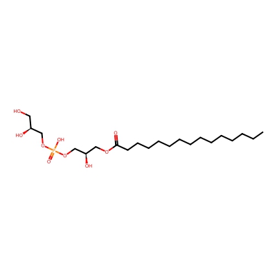 | CCSBASE_C7B9DA5B95 | LPG(15:0) | [M-H]- | 469.2573 | 209.66 | [H][C@](O)(CO)COP(OC[C@]([H])(O)COC(CCCCCCCCCCCCCC)=O)(=O)O | Lipids and lipid-like molecules | -1 | 17 | TW | calibrated with phosphatidylcholines (ESI+) and phosphatidylethanolamines (ESI-), doubly charged cardiolipins calibrated with poly-DL-alanine | |