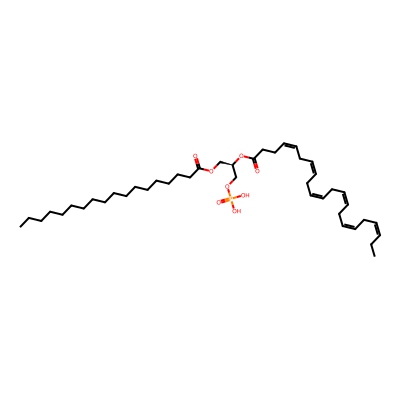 | CCSBASE_E85B490101 | PA(40:05) | [M+2Na-H]+ | 795.4929 | 283.07 | CCCCCCCC/C=C\CCCCCCCC(=O)OC[C@H](COP(=O)(O)O)OC(=O)CCCCC/C=C\C/C=C\C/C=C\C/C=C\CCCCC | Lipids and lipid-like molecules | 1 | 18 | DT | stepped-field | |