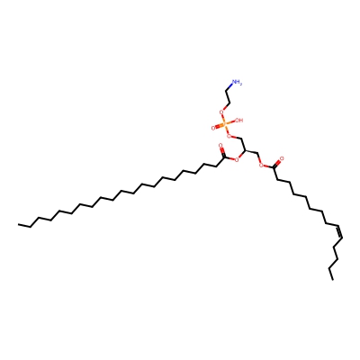 | CCSBASE_892004393D | PE(34:01) | [M+Na]+ | 740.52 | 276.03 | CCCCCCCCCCCCCCCC(=O)OC[C@H](COP(=O)(O)OCCN)OC(=O)CCCCCCCCC/C=C\CCCCCC | Lipids and lipid-like molecules | 1 | 18 | DT | stepped-field | |