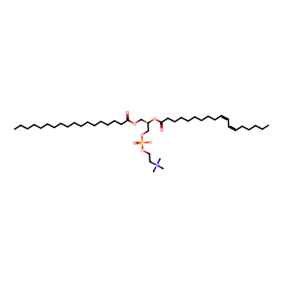 | CCSBASE_E7DC9E8042 | PC(36:02) | [M+H]+ | 786.5989 | 285.92 | CCCCCCCCCCCCCCCCCC(=O)OC[C@H](COP(=O)([O-])OCC[N+](C)(C)C)OC(=O)CCCCCCCC/C=C\C=C/CCCCC | None | 1 | 18 | DT | stepped-field | |