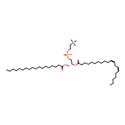 | CCSBASE_4948490149 | PC(36:02) | [M+Cl]- | 820.5635 | 295.12 | CCCCCCCCCCCCCCCCCC(=O)OC[C@H](COP(=O)([O-])OCC[N+](C)(C)C)OC(=O)CCCCCCCC/C=C\C=C/CCCCC | None | -1 | 18 | DT | stepped-field | |