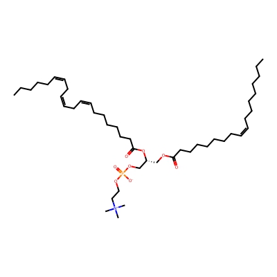 | CCSBASE_E87819FDC8 | PC(36:02) | [M+HCOO]- | 830.5951 | 295.45 | CCCCCCCCCCCCCCCCCC(=O)OC[C@H](COP(=O)([O-])OCC[N+](C)(C)C)OC(=O)CCCCCCCC/C=C\C=C/CCCCC | None | -1 | 18 | DT | stepped-field | |