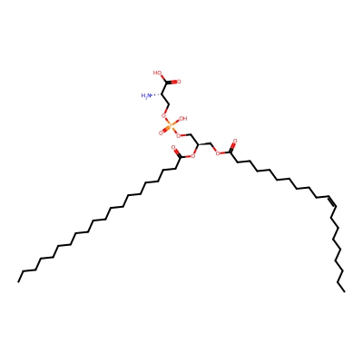 | CCSBASE_4BB3520447 | PS(40:01) | [M+H]+ | 846.6197 | 295.93 | CCCCCCCCCCCCCCCCCCCC(=O)O[C@H](COC(=O)CCCCCCCCC/C=C\CCCCCCCC)COP(=O)(O)OC[C@@H](C(=O)O)N | Lipids and lipid-like molecules | 1 | 18 | DT | stepped-field | |