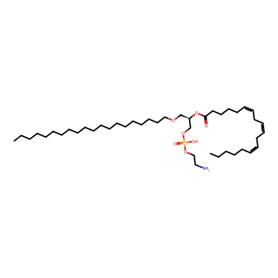 | CCSBASE_AEEDCD9F01 | PE(o38:03) | [M+Na]+ | 778.5688 | 283.24 | CCCCCCCCCCCCCCCCCCCCOC[C@H](COP(=O)(O)OCCN)OC(=O)CCCC/C=C\C/C=C\C/C=C\CCCCC | Lipids and lipid-like molecules | 1 | 18 | DT | stepped-field | |
