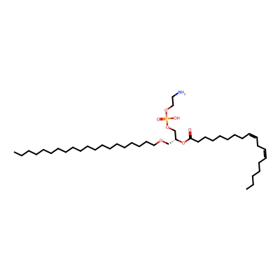 | CCSBASE_8FBE7C1000 | PE(o36:00) | [M-H]- | 730.5708 | 271.66 | CCCCCCCCCCCCCCCCCCOC[C@H](COP(=O)(O)OCCN)OC(=O)CCCCCCCCCCCCCCCCC | Lipids and lipid-like molecules | -1 | 18 | DT | stepped-field |