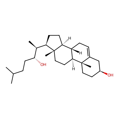 | CCSBASE_148C38CC85 | 22beta-Hydroxycholesterol | [M+H-H2O]+ | 385.347 | 205.2 | C[C@@H]([C@H]1CC[C@@H]2[C@@]1(CC[C@H]3[C@H]2CC=C4[C@@]3(CC[C@@H](C4)O)C)C)[C@@H](CCC(C)C)O | Lipids and lipid-like molecules | 1 | 4 | DT | single field, calibrated with Agilent tune mix (Agilent) | |
