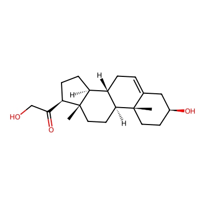 | CCSBASE_276962B3F0 | 21-Hydroxypregnenolone | [M+H-H2O]+ | 315.2323 | 178.4 | C[C@]12CC[C@H]3[C@H]([C@@H]1CC[C@@H]2C(=O)CO)CC=C4[C@@]3(CC[C@@H](C4)O)C | Lipids and lipid-like molecules | 1 | 4 | DT | single field, calibrated with Agilent tune mix (Agilent) | |