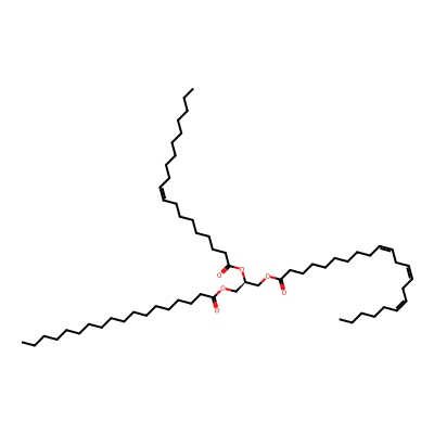 | CCSBASE_B8C82861A5 | TG(59:3) | [M+NH4]+ | 972.8941 | 342.22 | CCCCCCCCCCCCCCCCCCCCCC(=O)OC[C@@H](COC(=O)CCCCCCC/C=C\C/C=C\CCCC)OC(=O)CCCCCCCCC/C=C\CCCCCCCC | Lipids and lipid-like molecules | 1 | 19 | DT | single field | |